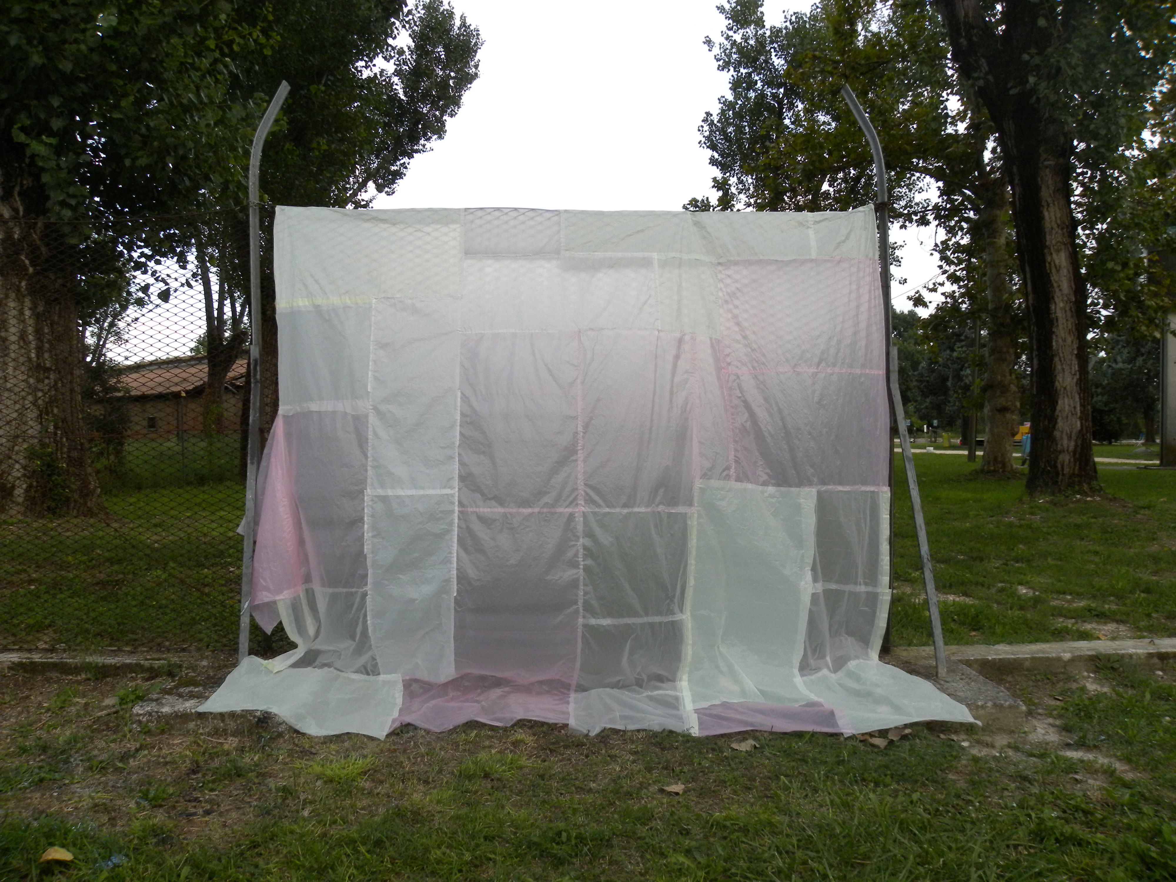 plastic bags, hand-sewn